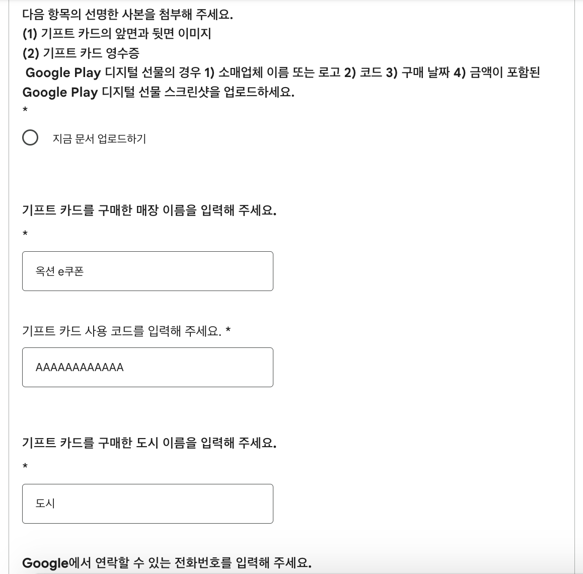 음? 하고 놀라서 여러차례 시도했는데 모두다 실패했고, 설마 하는 마음에 같은 기프트카드 코드를 다른 계정에도 입력해 봤지만 모두 동일한 오류(추가정보 등록..)가 발생해서 이건 뭔가 있나? 싶어서 구글링을 하니 구글 기프트카드와 같은 상품권?을 판매하는 사이트에 상세한 안내가 있어서 참고해 보았습니다.