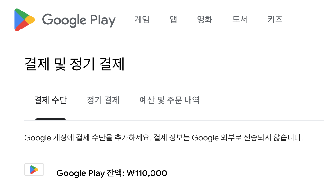 처음엔 10만원짜리 기프트카드 하나만 사서 충전하려고 했는데 이것이 오류로 막히자 혹시나 싶어서 1만원을 더 사버려서... 총 11만원이 충전된 상태입니다.